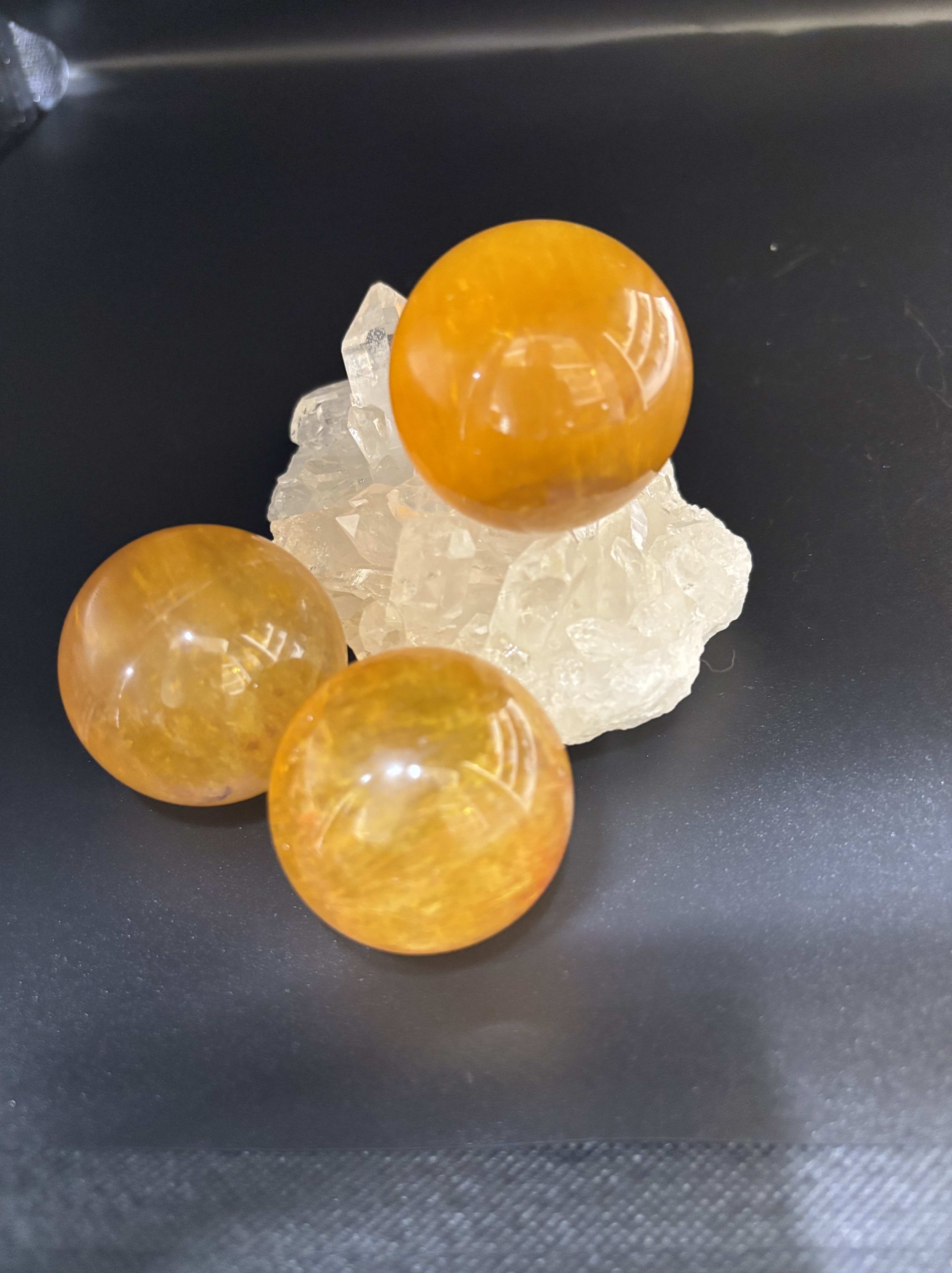 2025.11.13 11月13日入荷情報 新入荷情報をお知らせします! 🌟イエローフローライト🌟 大変美しい色味のイエローフローライトの丸玉が入荷しました。 イエローフローライトは、「天才の石」と呼ばれ、集中力や知的好奇心を高め、創造性を刺激する効果が期待できます。また、活力やポジティブなエネルギーをもたらし、ネガティブな感情を和らげるといった効果も信じられています。金運や、新たな物事に挑戦する勇気をサポートするお守りとしても用いられます