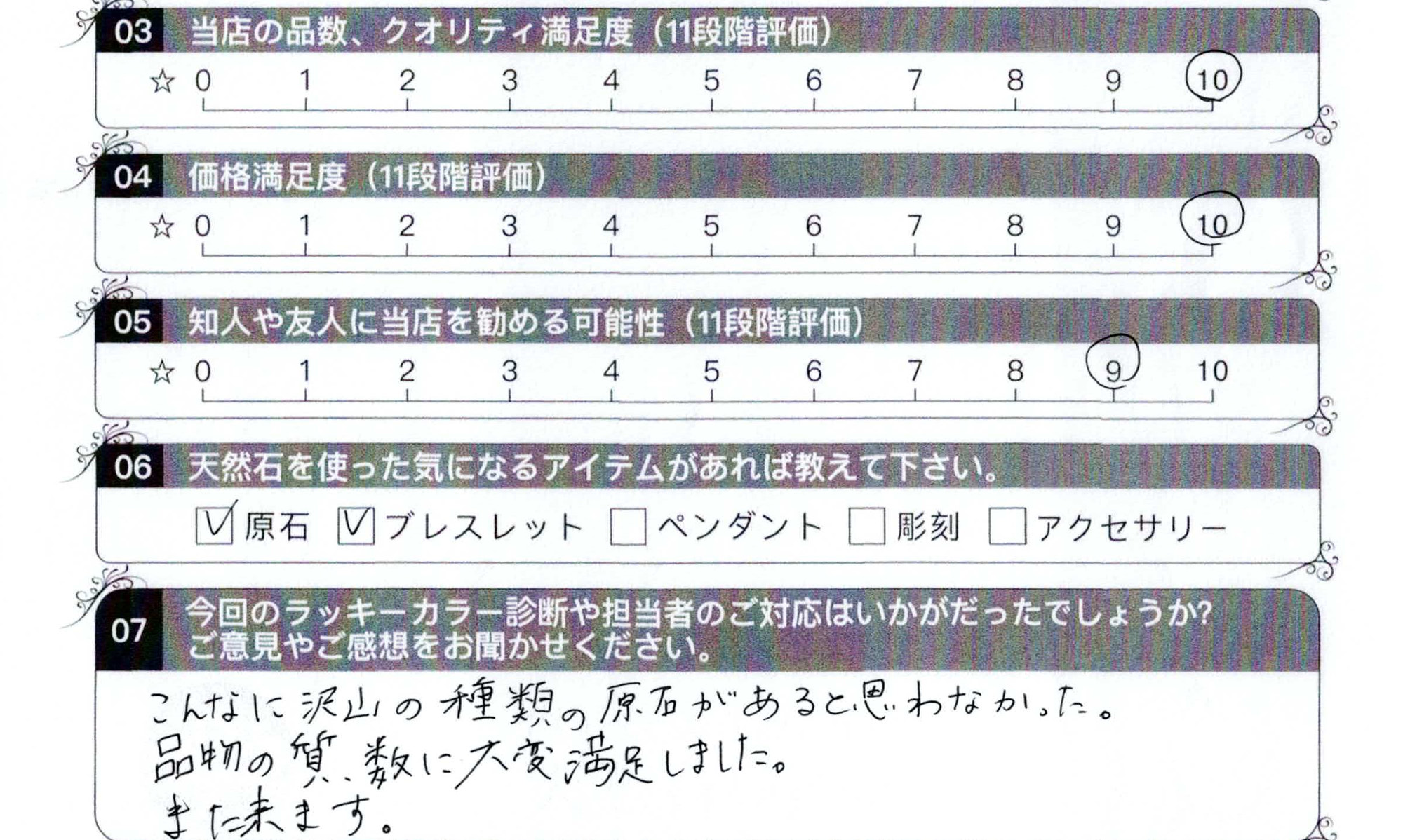 - 07,今回のラッキーカラー診断や担当者のご対応はいかがでしたでしょうか?