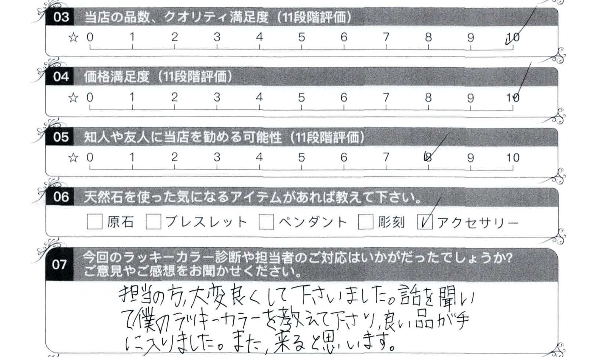 - 07,今回のラッキーカラー診断や担当者のご対応はいかがでしたでしょうか?